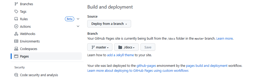 Pages>Branch,设置分支及书籍html文件路径,本例中为docs