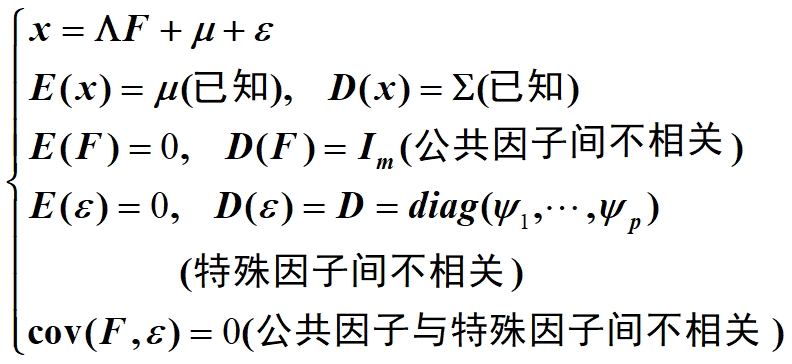 其中为已知的维原始变量,为待提取的维因子,为特殊因子。